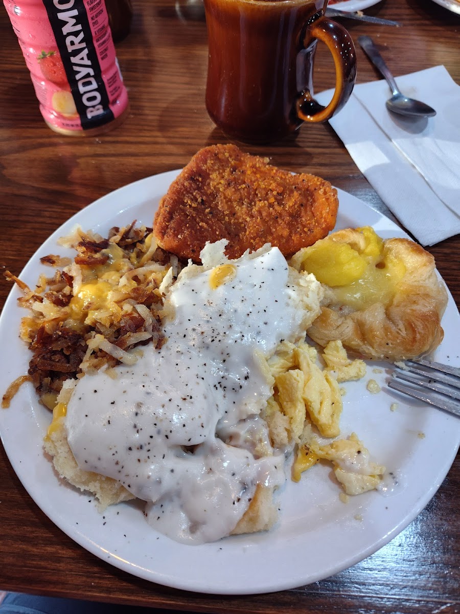 At Shoney's, the breakfast offerings are especially noteworthy. From the classic Biscuits & Gravy—two flaky buttermilk biscuits smothered in rich white gravy, to the hearty Pancake Breakfast, where fluffy pancakes are served with breakfast potatoes, eggs cooked to your liking, and a choice of meat, every dish tells a story of comfort. For those seeking something quick yet delightful, the Breakfast Sandwich comes highly recommended, featuring freshly scrambled eggs, American cheese, and crispy bacon, all nestled in a toasted croissant.